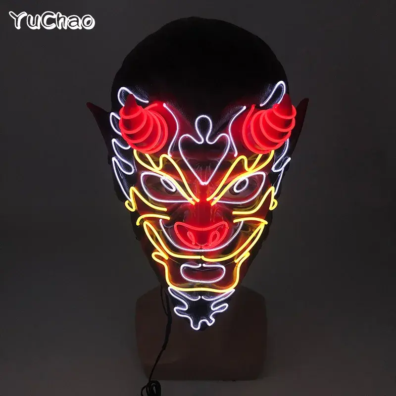 Masque de fantôme japonais lumineux pour Halloween brillant samouraï Noh masque de drame horreur taureau cornu démon masque en plastique Cosplay accessoires