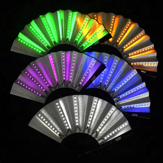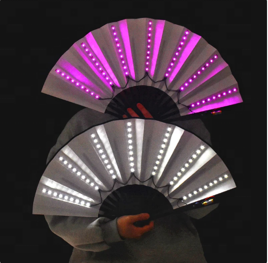 Ventilateur pliable LED lumineux, lumières de danse de boîte de nuit, cadeau de mariage, cadeaux pour invités, luminescence dans le noir, fournitures pour fête d'anniversaire, Halloween, 33 cm/13 pouces