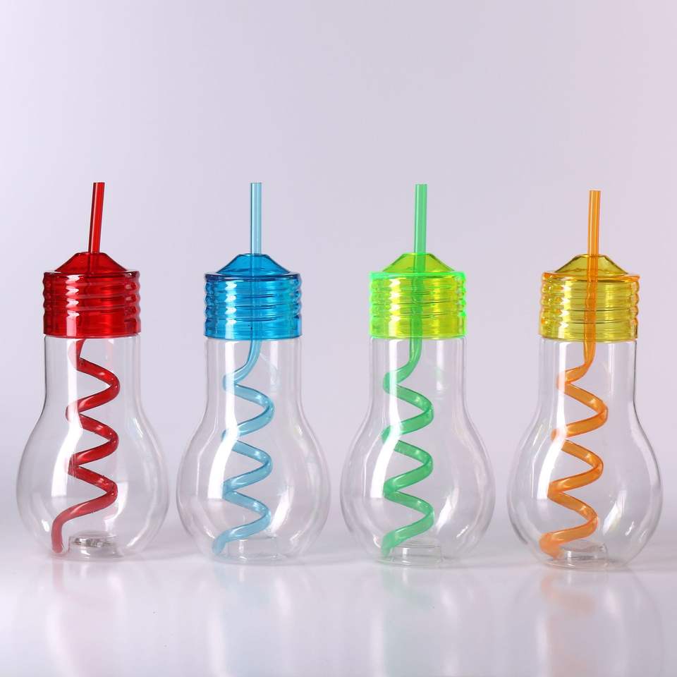 Gobelet lumineux créatif en plastique en forme d'ampoule pour thé au lait, café, boissons froides, bouteille à paille pour fête