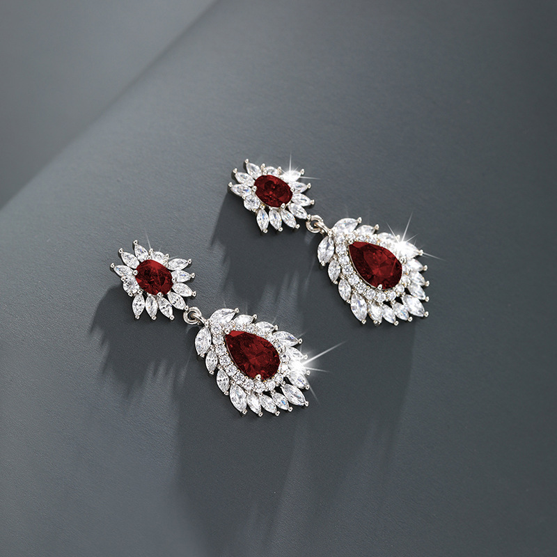 Boucles d'oreilles rondes en rubis lumineux, rubis à face argentée, style féminin
