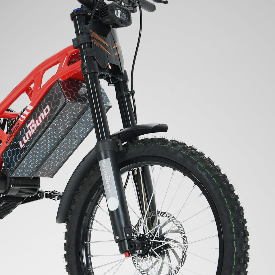 Fourche avant:Fourche avant réglable inversée à double épaule KKE, débattement de 180 mm