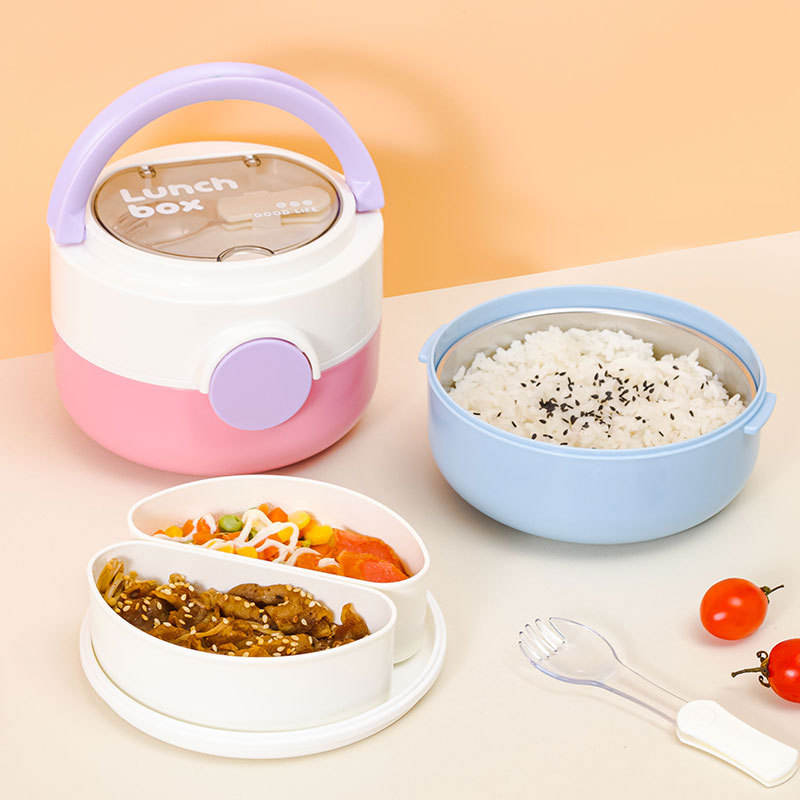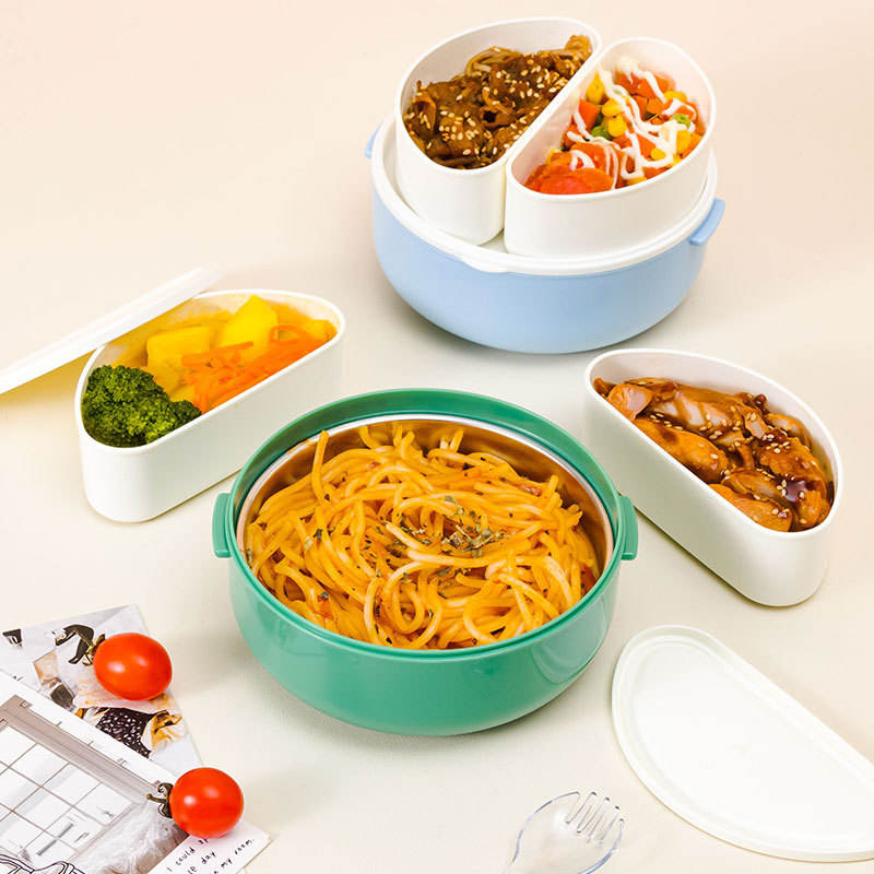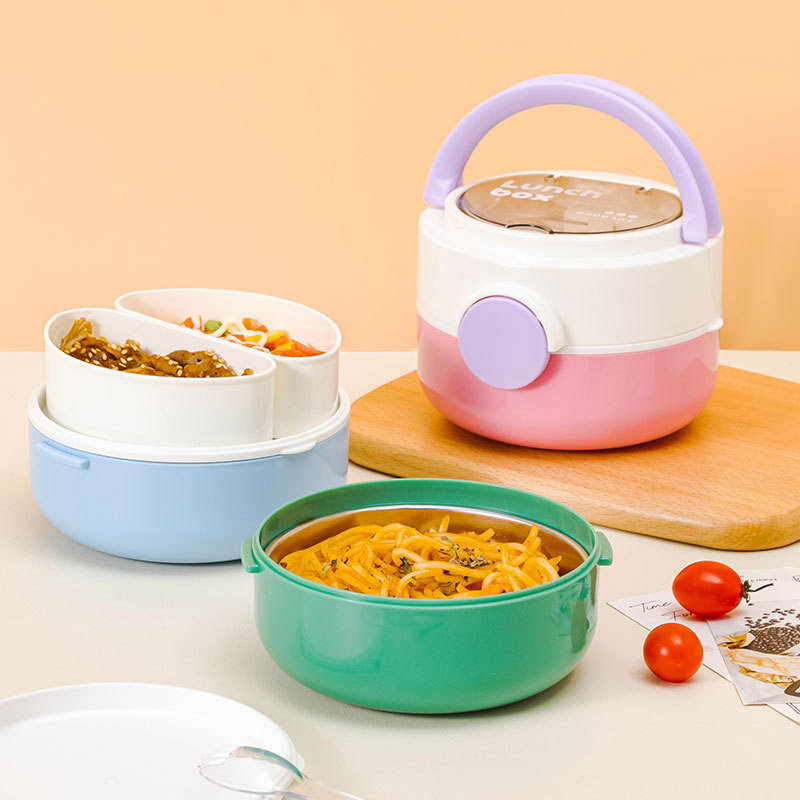 Boîte à lunch 60X ronde en acier inoxydable 304, double couche, isolée, compatible micro-ondes, portable, design uni