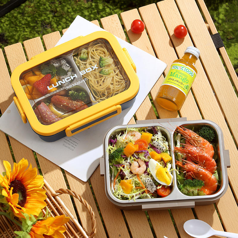 Boîte à lunch en acier inoxydable 304 rectangulaire avec compartiments pour le bureau et les étudiants, légère, portable et isotherme