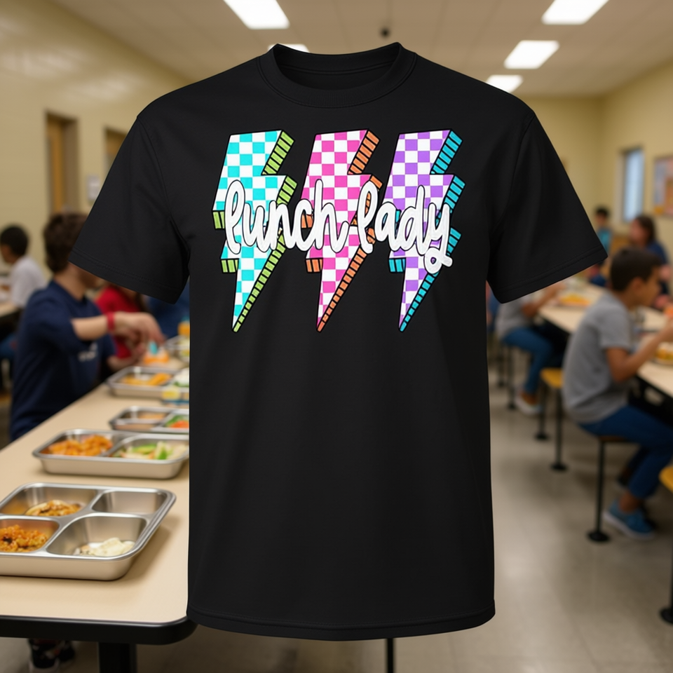 T-shirt à carreaux Lunch Lady pour la rentrée scolaire, design pour le premier jour d'école