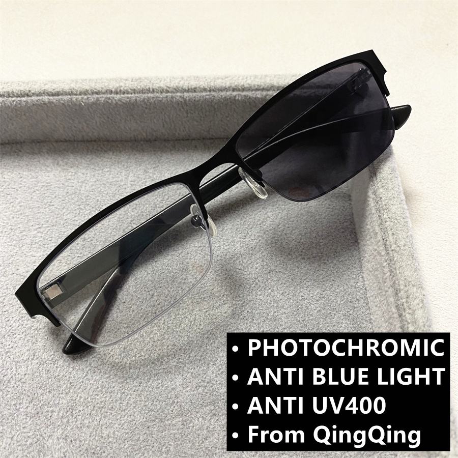 Lunette Photogray Anti Reflet Homme Lunette Hommes Lunettes Photochromiques Bleu Lumière Rectangle Semi-sans monture Alliage Noir Gris 2025