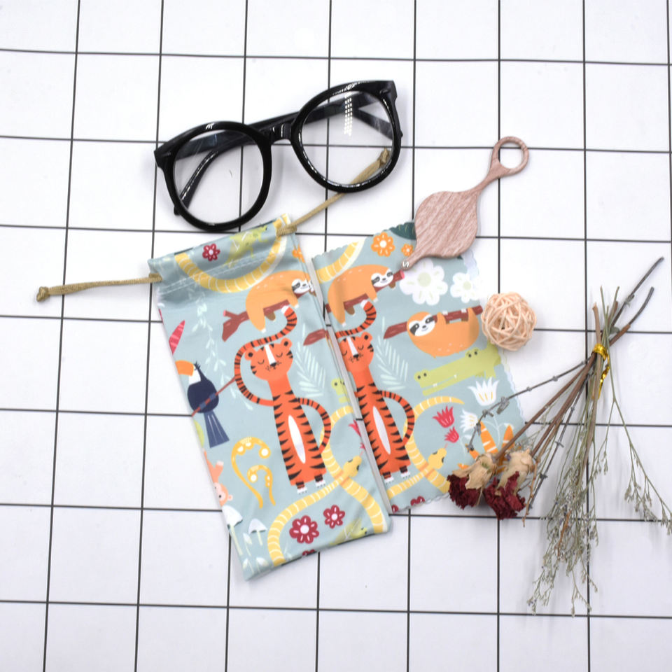 Packaging Details:Lunettes en tissu en microfibre de gros Sac de rangement de nettoyage Accessoires de lunettes de soleil Pochette d'emballage à cordon