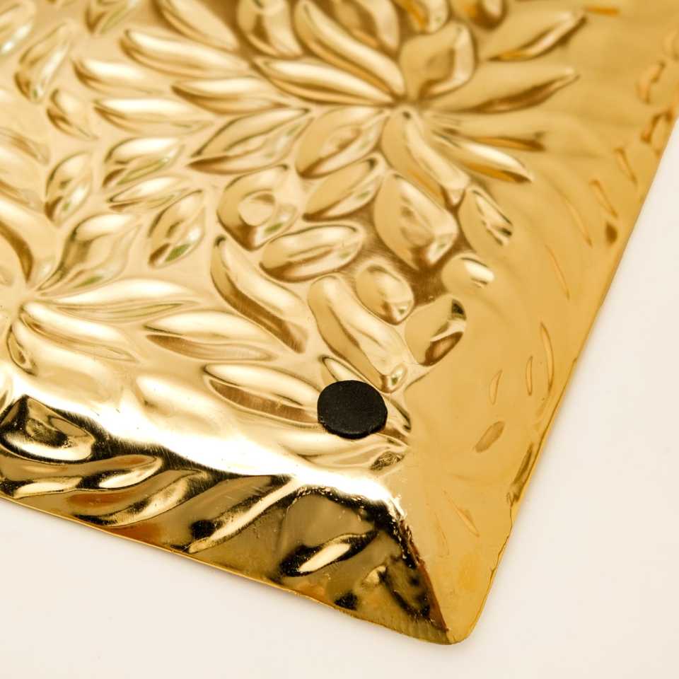 Plateau carré en aluminium gaufré plaqué or Ambar Exports Luxe Lustre pour un style Art Déco glamour, léger et multifonctionnel