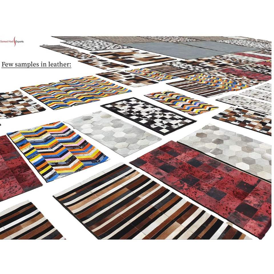 Tapis luxueux 100% cuir véritable, style moderne, surpiqué, antidérapant, à poils ras, fin, pour l'intérieur, décoration naturelle et élégante