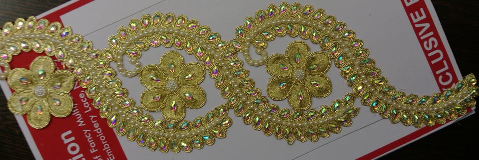 Bordure festonnée luxueuse de 4 pouces en dentelle Zari brodée à la main, or et argent de qualité supérieure avec strass irisés