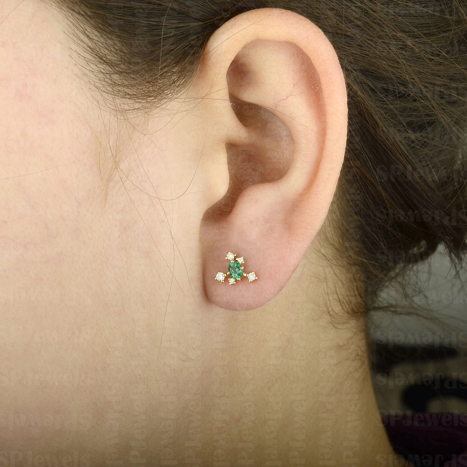 Arrivée luxueuse 14K solide or jaune diamant boucles d'oreilles lien antique émeraude naturelle pour anniversaires fêtes prêt à expédier