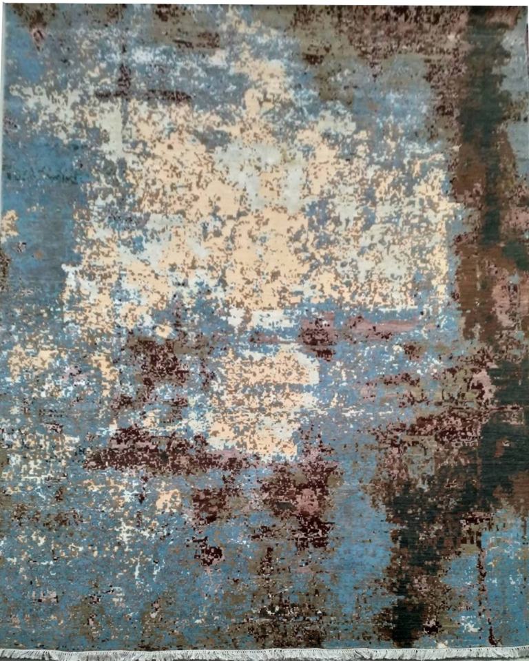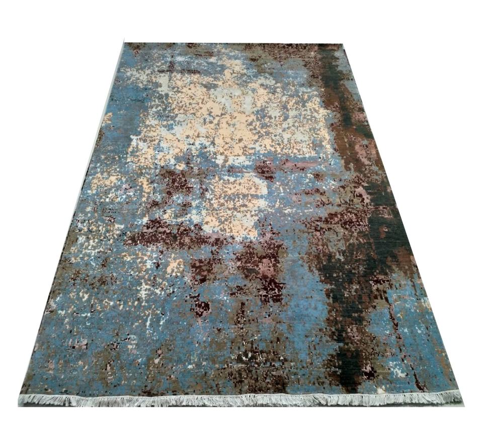 Tapis de sol luxueux, attrayant, enchanteur, moderne, abstrait, à boucles, fait main, noué à la main en Inde, en laine/soie de bambou, de haute qualité