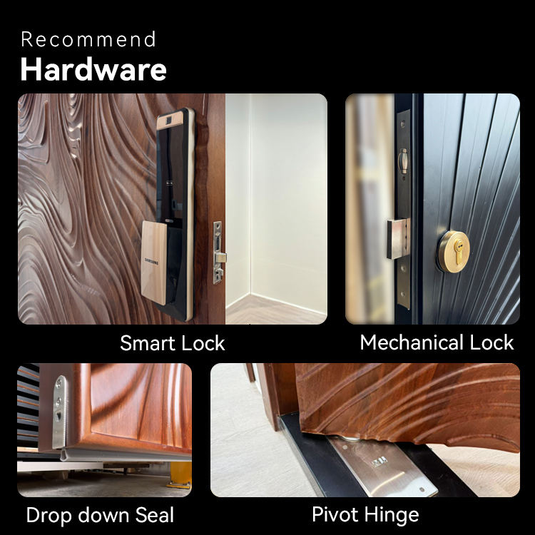 Luxueux sur mesure coulant texturé sculpture en bois massif porte d'entrée extérieure porte d'entrée principale pour les maisons