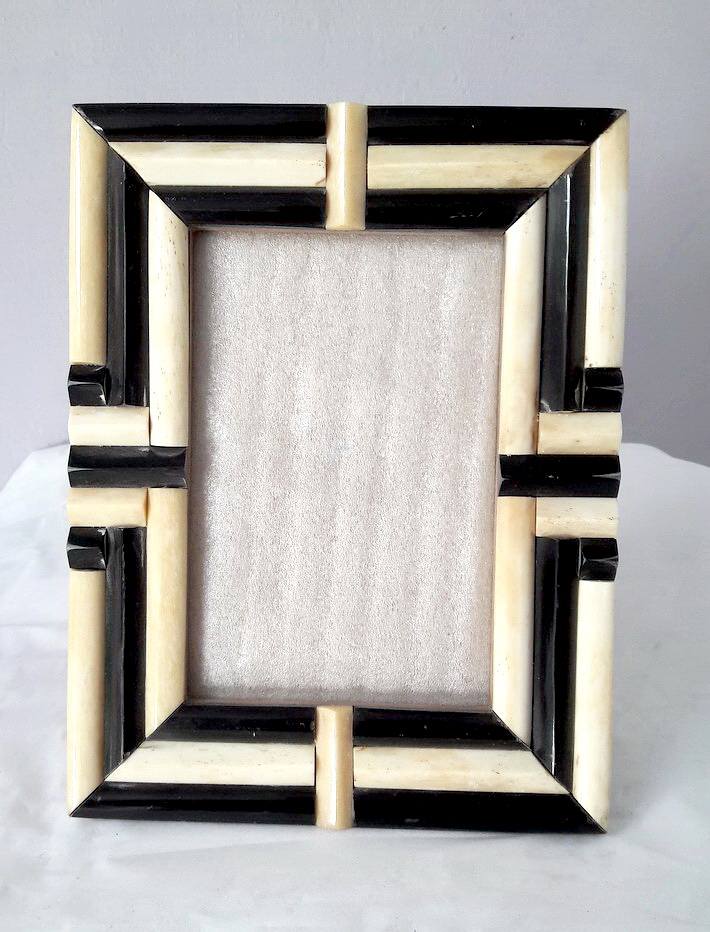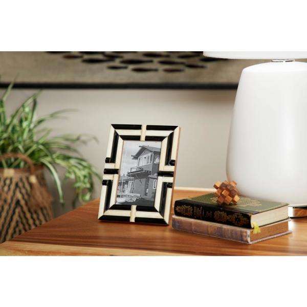 Product Name:Black and Natural Bone Striped Rectangular Picture Frame