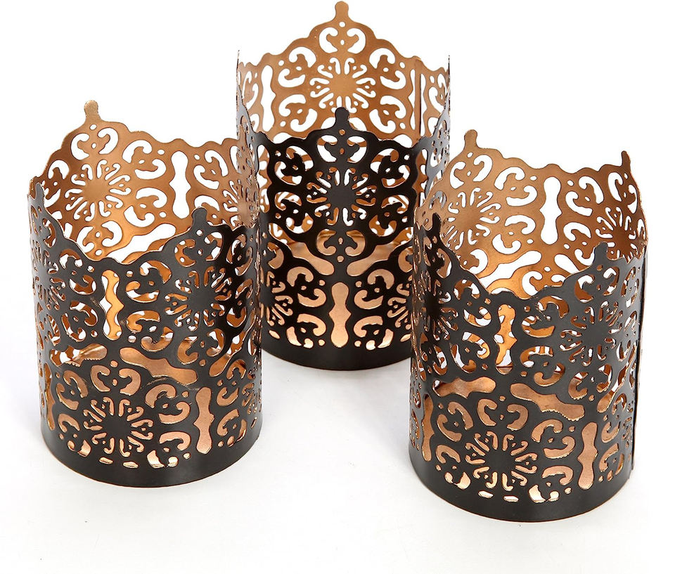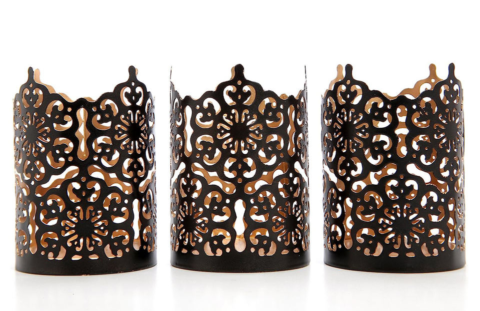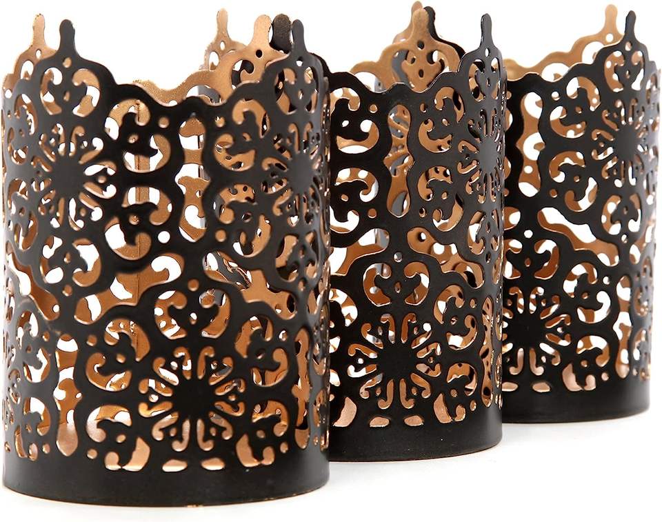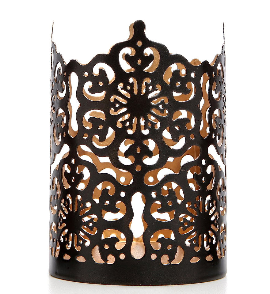 Bougeoir de taille personnalisée en métal noir luxueux avec éclairage votif en verre de couvercle pour le décor de Table de maison de mariage
