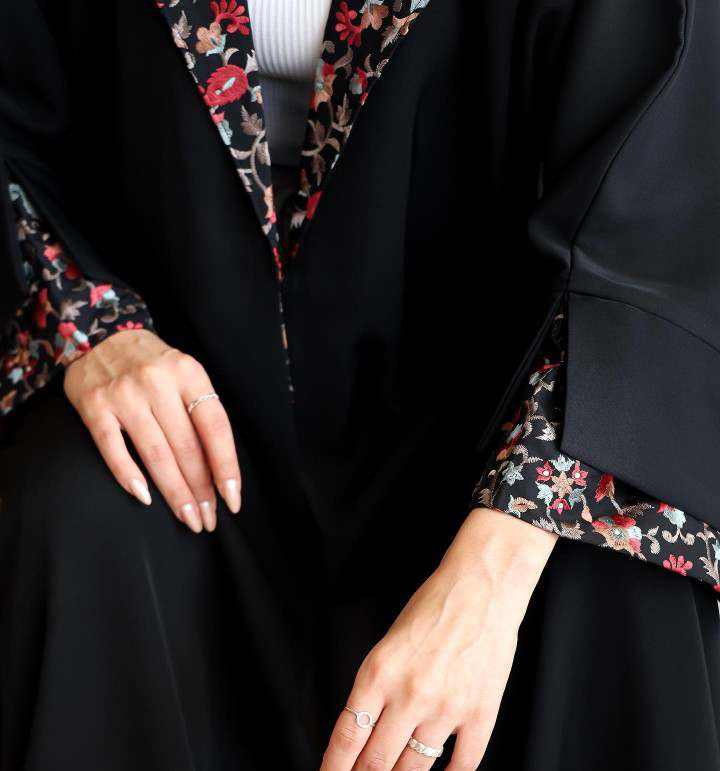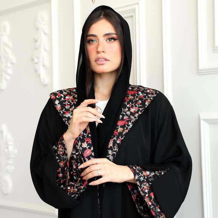 Luxurious Black Silk Designer Abaya Multi-Colour Embroidery for Adults Traditional Muslim Prayer Clothing Accessory India