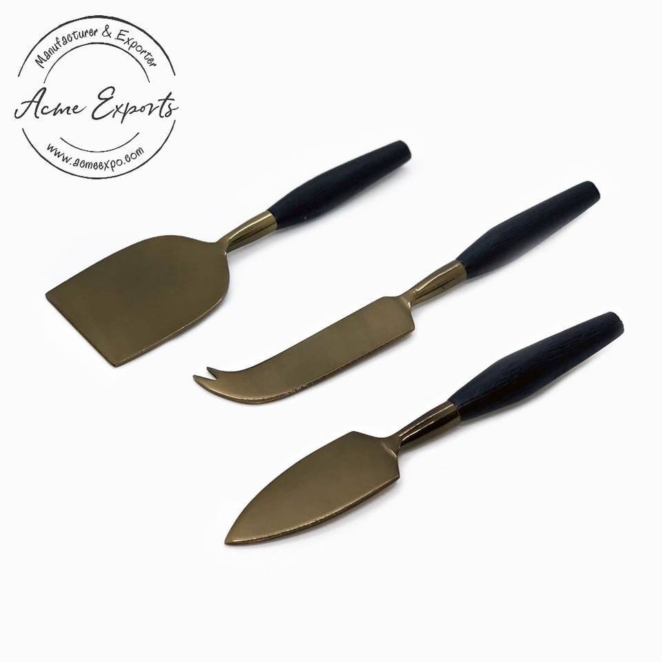 Ensemble de couteaux à fromage en laiton luxueux avec poignées en bois parfait pour servir couper et étaler de la vaisselle élégante