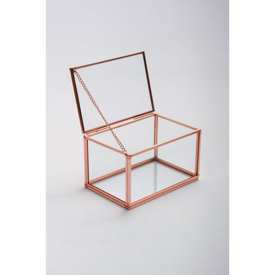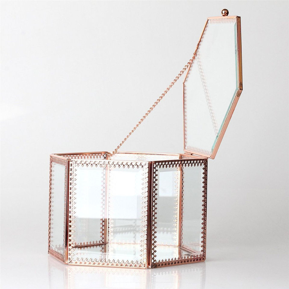Boîte à bijoux en laiton luxueuse, rectangulaire, avec couvercle à charnières en forme de D, cadre en métal doré moderne, boîte en verre transparent pour boucles d'oreilles, bracelets