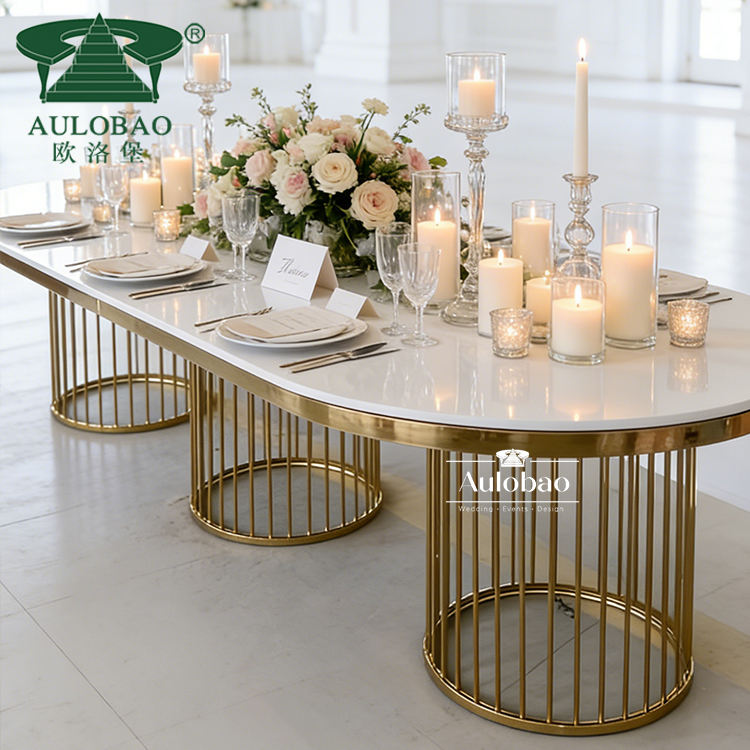 Table à manger moderne convertible luxueuse en laiton doré pour 8 personnes, pour mariage, maison, hôtel
