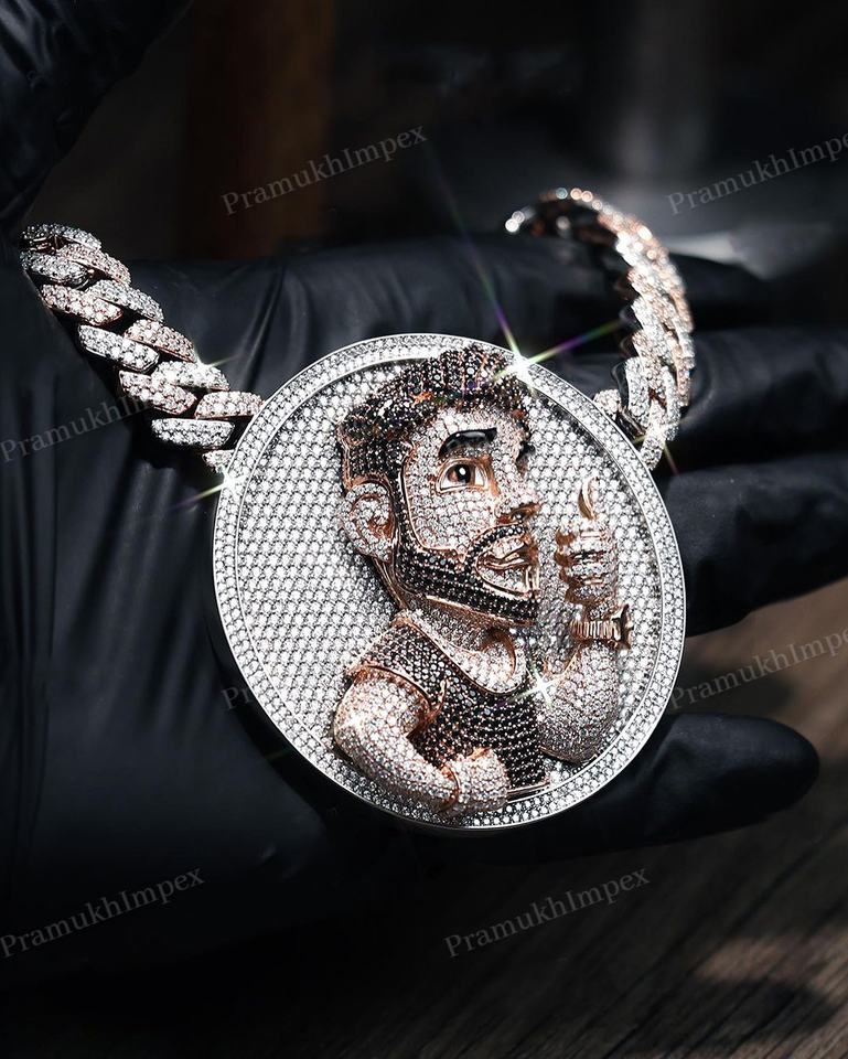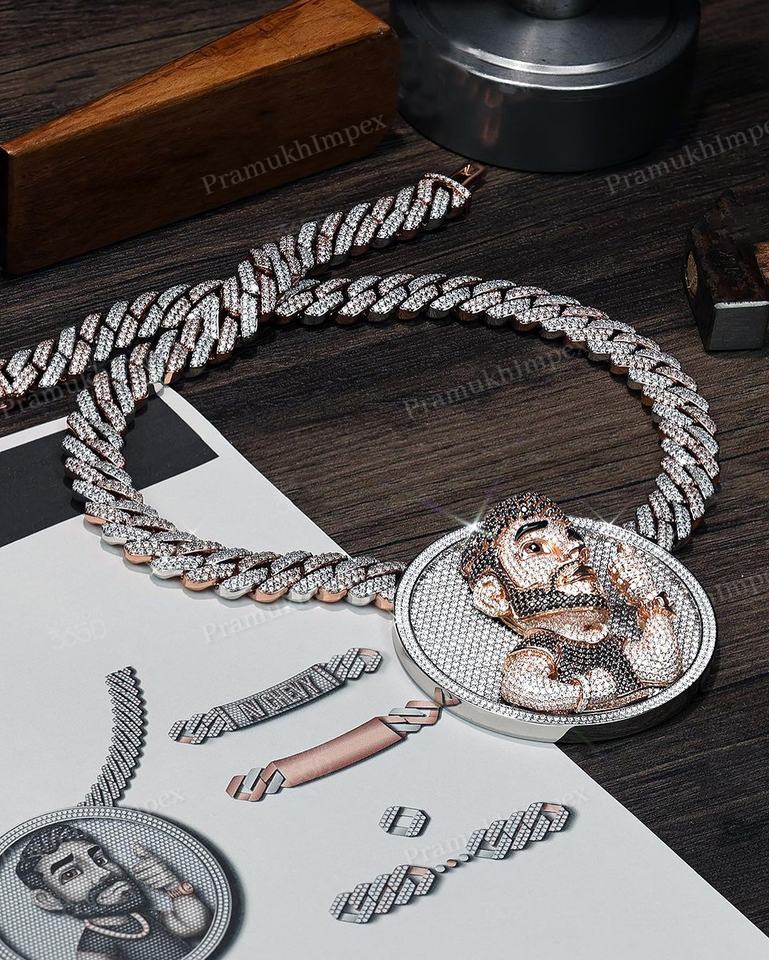 Collier Pendentif Fantaisie de Mode pour Fête, Forme Hip Hop 3D, Argent Sterling 925, Plaqué Or Deux Tons, Moissanite VVS Personnalisé