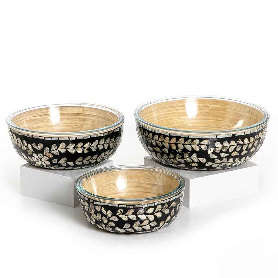 Ensemble de bols au design luxueux, écologique, en résine nacre et bois, design moderne, vaisselle polie et artisanale