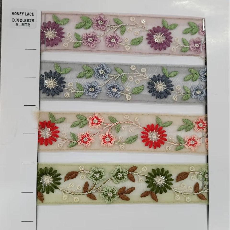 Dentelle de luxe en dentelle de miel écologique brodée de motifs floraux, garniture haut de gamme pour sacs de mariée et de mode, motifs complexes et élégants