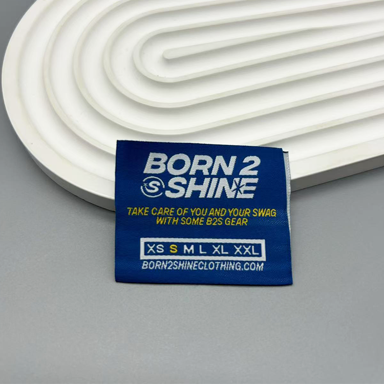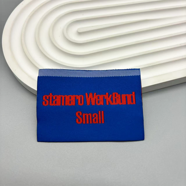 Étiquettes de vêtements brodées luxueuses avec un logo personnalisé doré brillant, écologiques et de haute qualité pour chemises et jeans.
