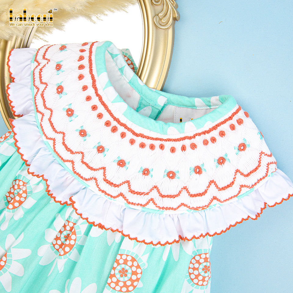 Luxurious Floral Geometric Smocking 100% Cotton Baby Romper OEM ODM Girl Bubble Set for Spring-BB2495 Wholesale