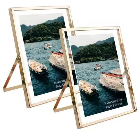 Luxurious Forged Design Metal Silver Color Plated Photo Frame Rectangle Shape Unique Design Set of 2 Tabletop Home Decor