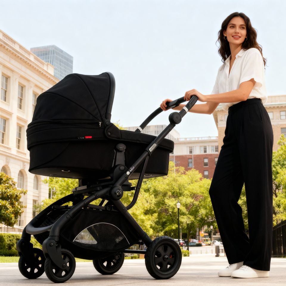 Poussette pliable en trois parties ; 360° poussette bébé