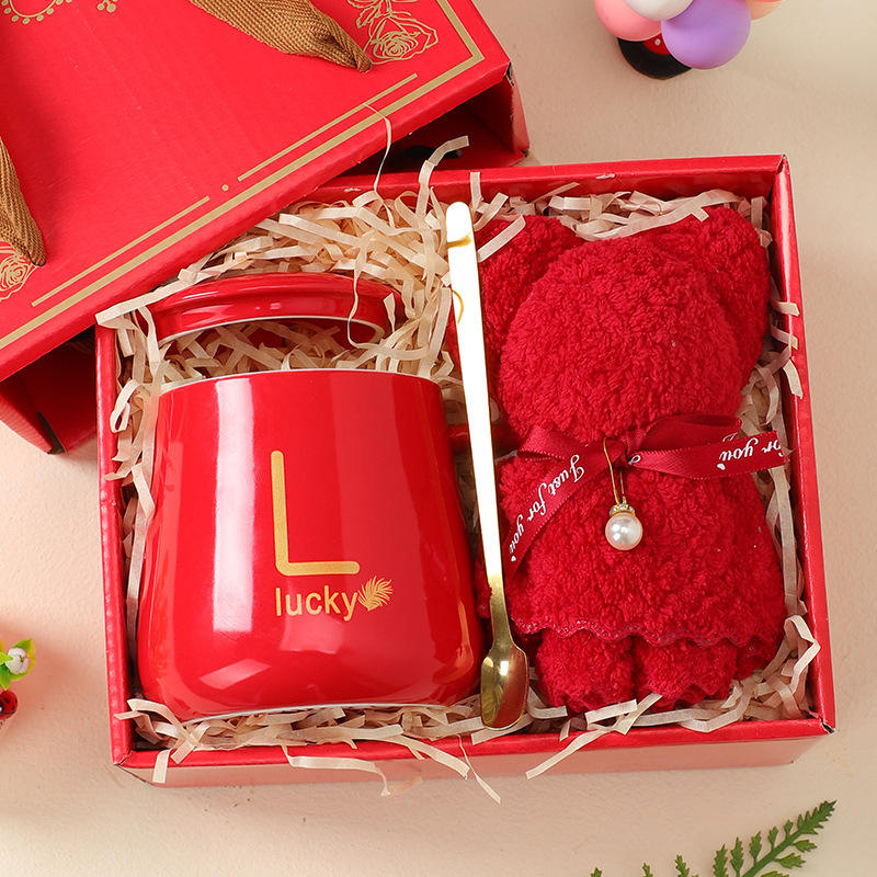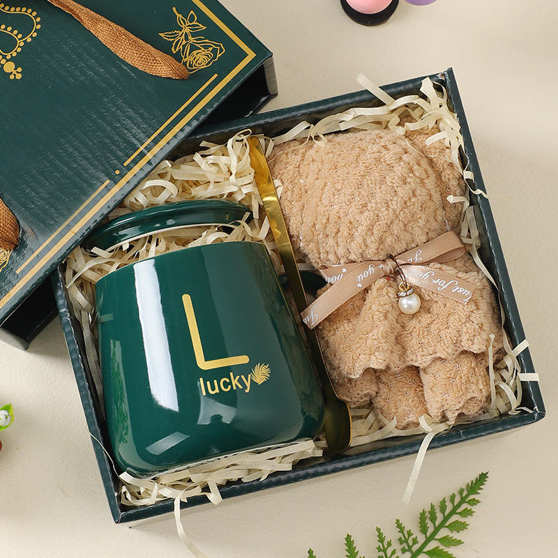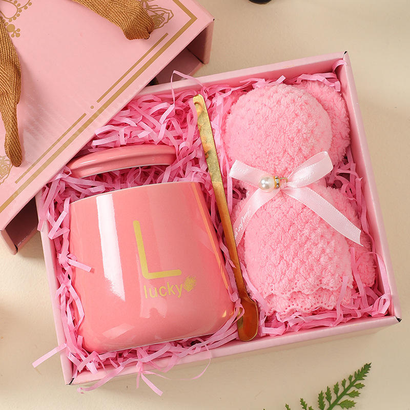 Cadeau de luxe en céramique bureau tasse à café et cuillère ensemble de serviettes lait thé tasses anniversaire Couples cadeaux amis tasse Promotion cadeau ensemble