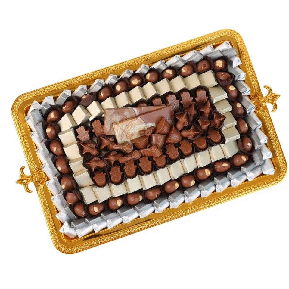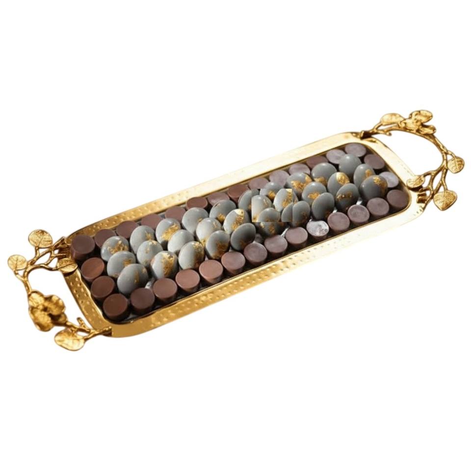 Plateau de service rectangulaire en métal doré luxueux, support décoratif pour chocolats et bonbons, pour mariages, maison, hôtel et occasions spéciales