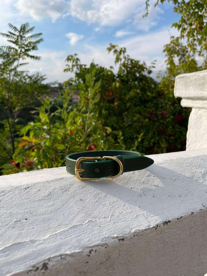 Ensemble de collier vert luxueux avec laisse de chien en cuir en laiton pour petits et moyens chiens