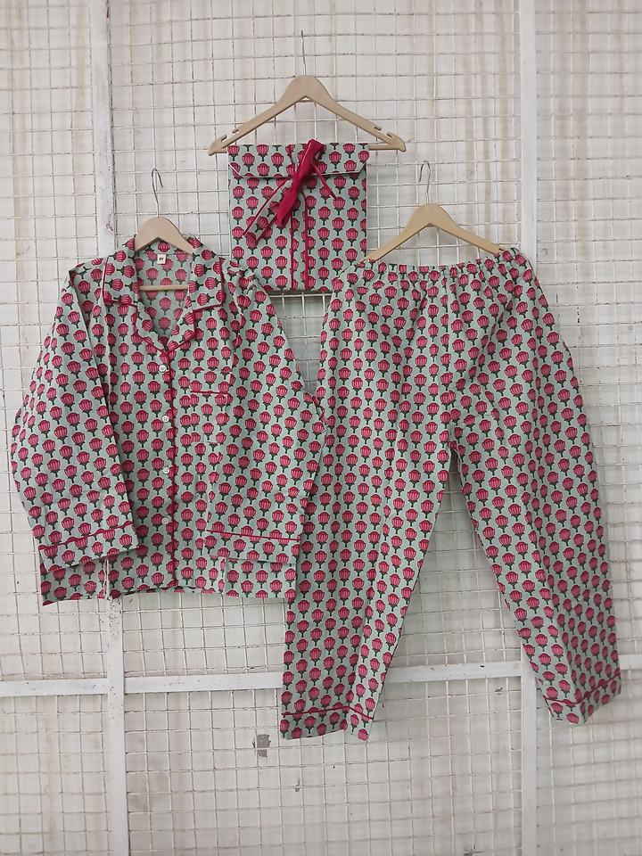 Product Name:Luxurious Hand Block Printed Cotton Kids Pajama Set