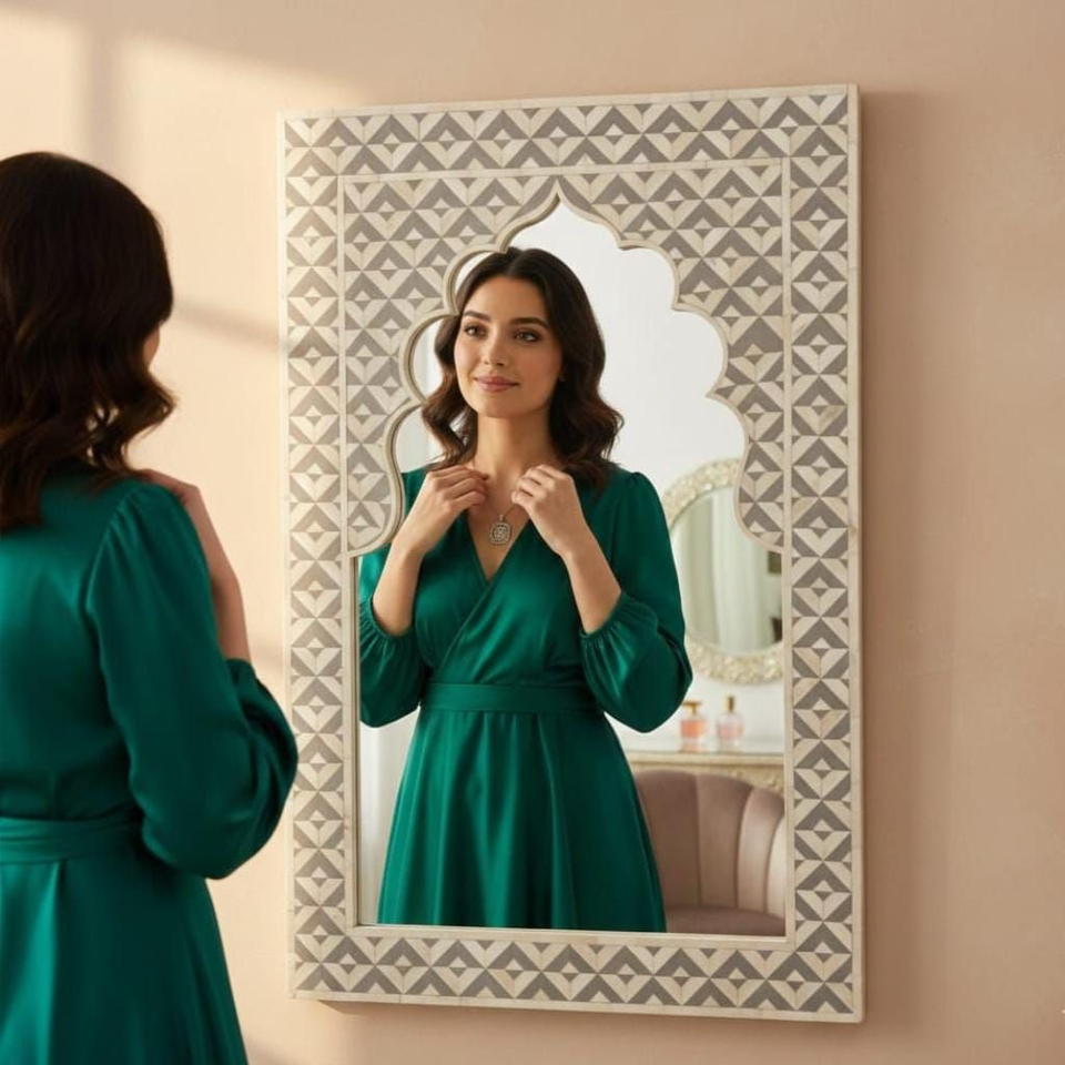 Cadre de miroir luxueux fait main en os incrusté à 100 %, décoration personnalisée de haute qualité pour usage mural, décoration intérieure