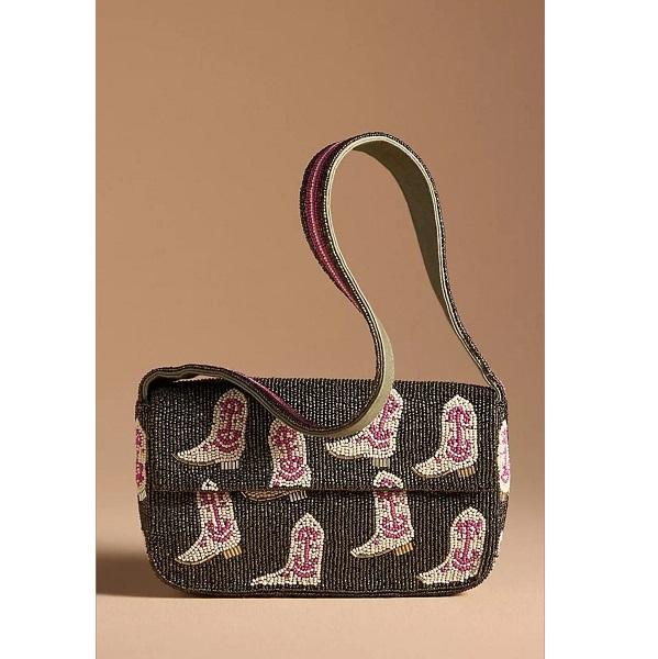 Sac à main à bandoulière brodé de perles de rocaille artisanales luxueuses avec sangle réglable offrant un beau design