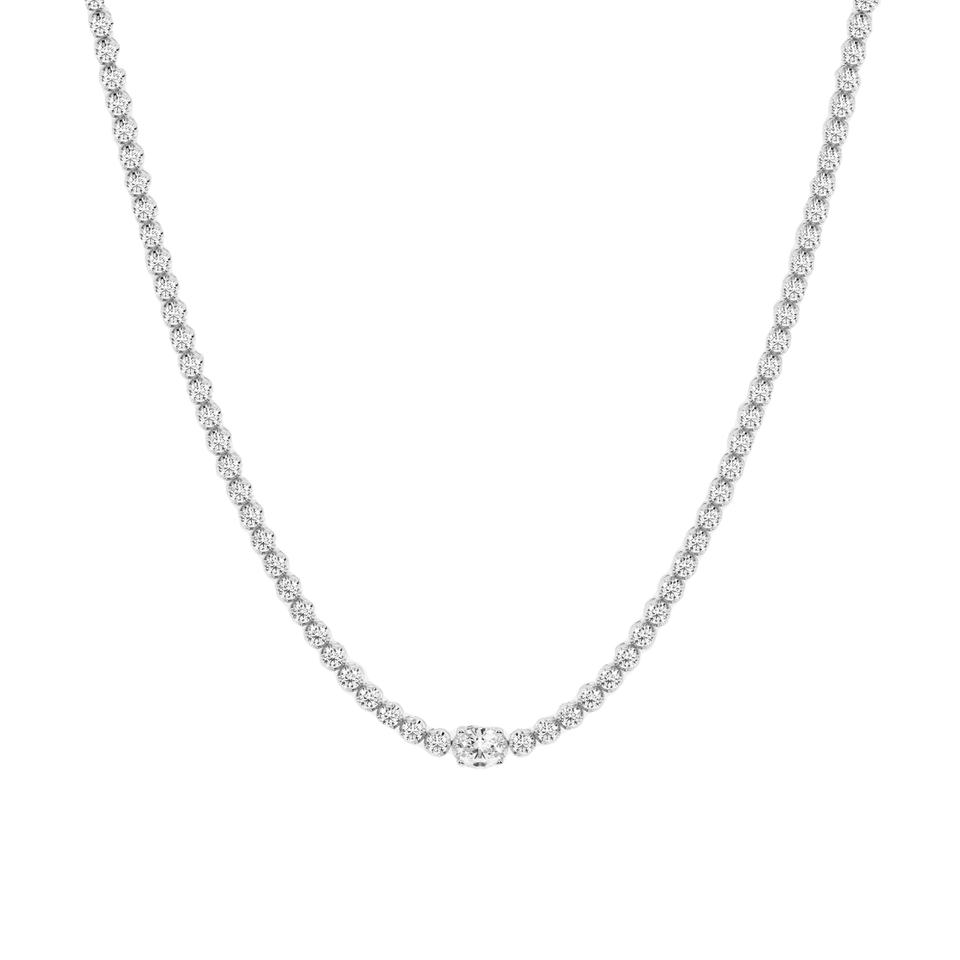 Luxueux fait à la main haute joaillerie 18k or blanc massif et coupe ovale diamant cultivé en laboratoire collier de Tennis Station unique meilleur pour les cadeaux