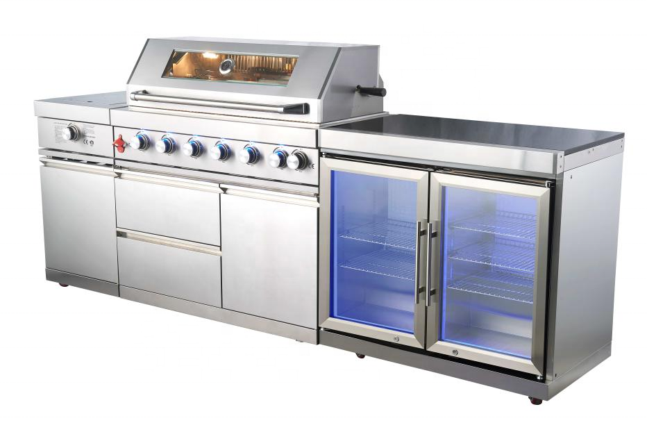 Cuisine extérieure luxueuse haut de gamme Grilles de barbecue en acier inoxydable Réfrigérateur à double porte avec armoire d'évier pour le jardin