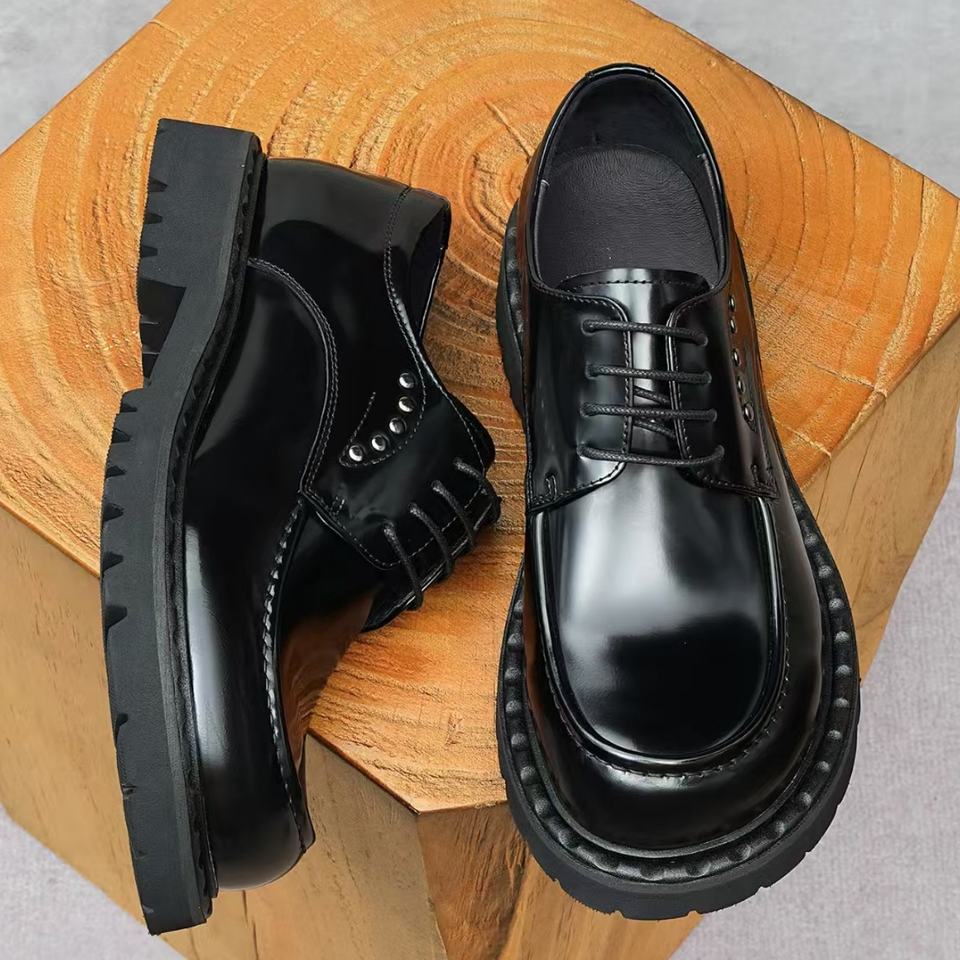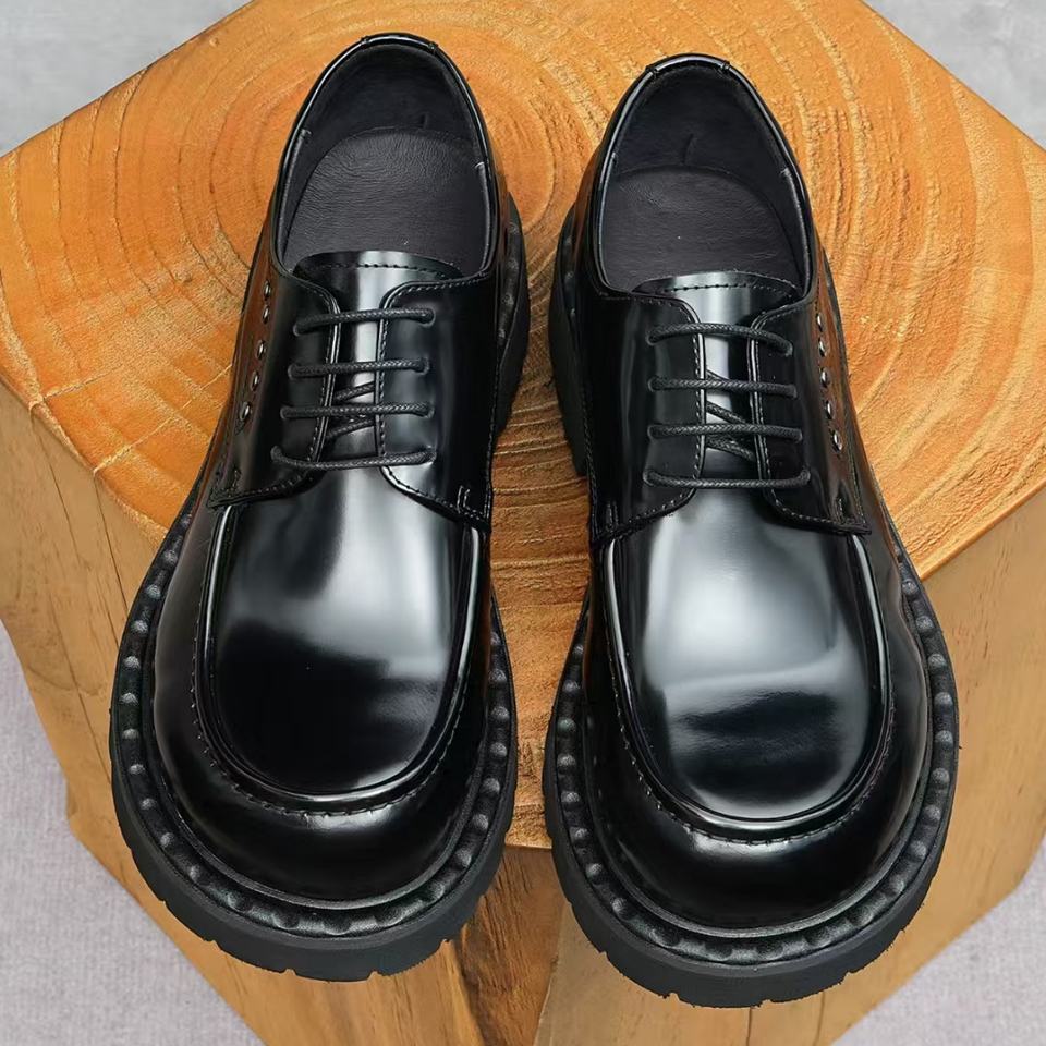 Chaussures habillées classiques italiennes en cuir de vachette de luxe pour hommes, rétro, imperméables, à lacets, noires, pour la vente en gros