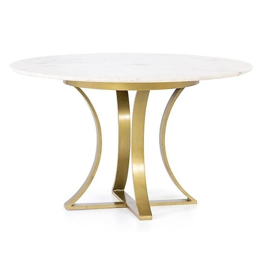 Table basse de salon luxueuse avec base en métal doré et plateau en marbre blanc, meubles en pierre durables, style tables basses