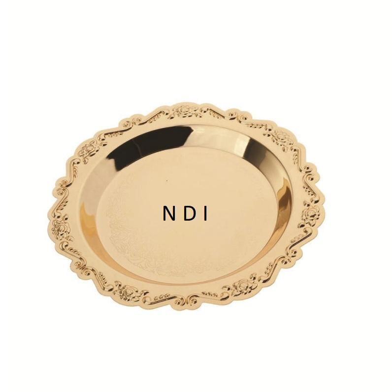 Assiette de présentation de luxe pour mariage et événements, forme personnalisée, finition dorée, pour service de traiteur et décoration de table.