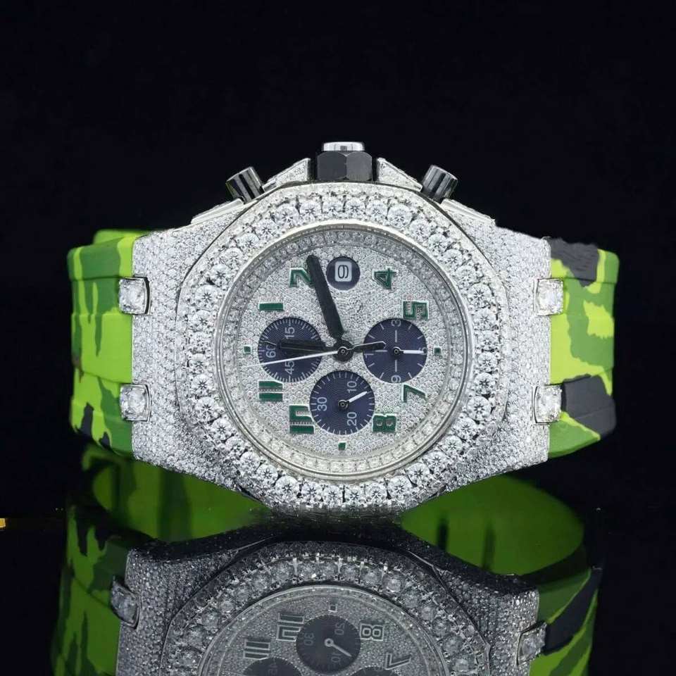 Luxurious Miyota Mechanical Stainless Steel Case Sapphire Crystal Chronograph 41mm Green Black Rubber Band Analog Auto Watch
