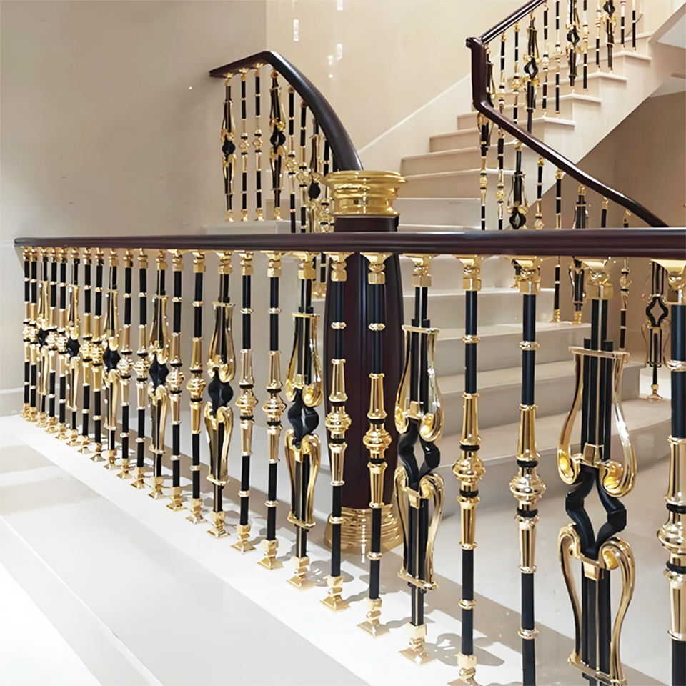 Rampe d'escalier durable au design moderne luxueux pour rampe d'escalier de villa Colonne de fleurs élégante