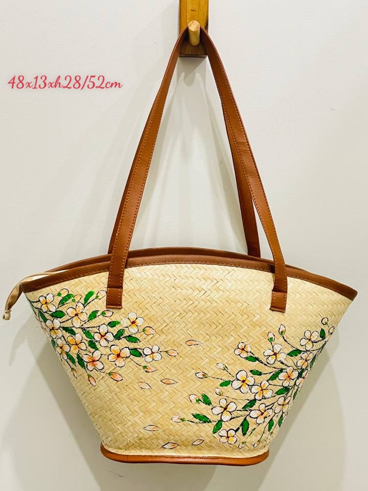 Luxueux nouveau modèle tissé à la main carex herbe sac Durable écologique deux sangles fermeture à glissière avec décoration florale