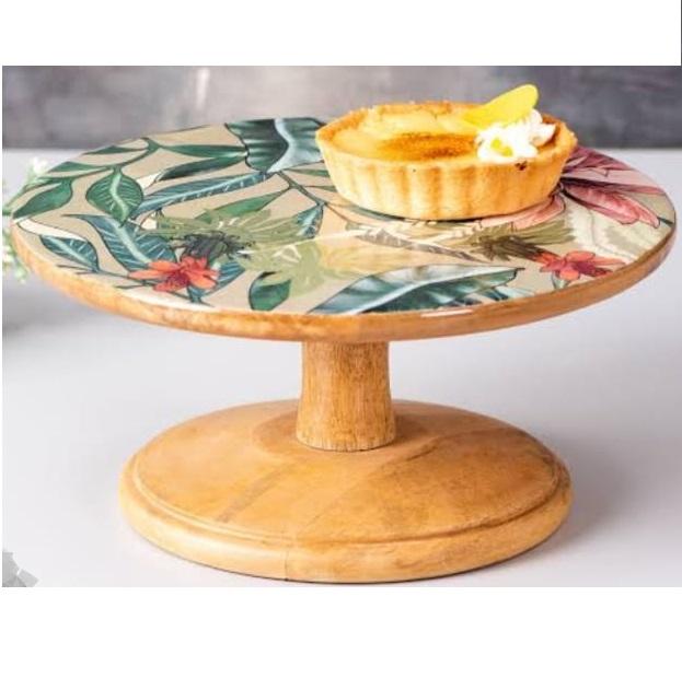 Support à gâteau de luxe pour fêtes, nouveau design imprimé 2026, décoration de table, support à gâteau en bois pour servir les fruits