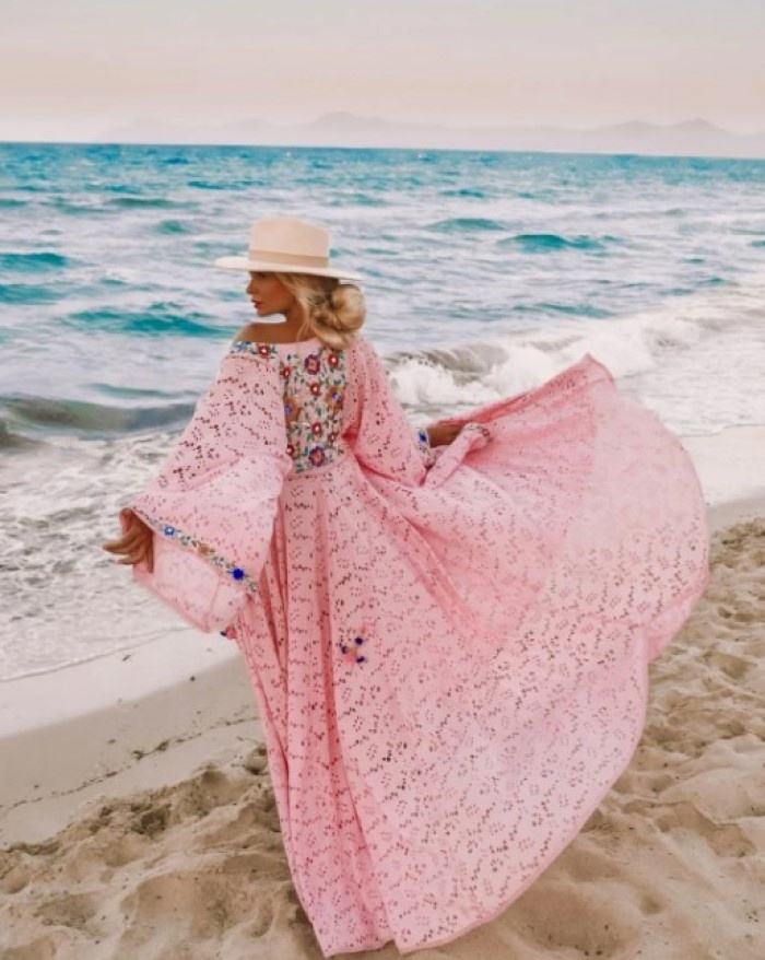 Robe Kimono longue en dentelle pour femme, tunique Maxi, ample et charmante, de couleur rose, avec cordon de serrage, produit de luxe, 1 pièce