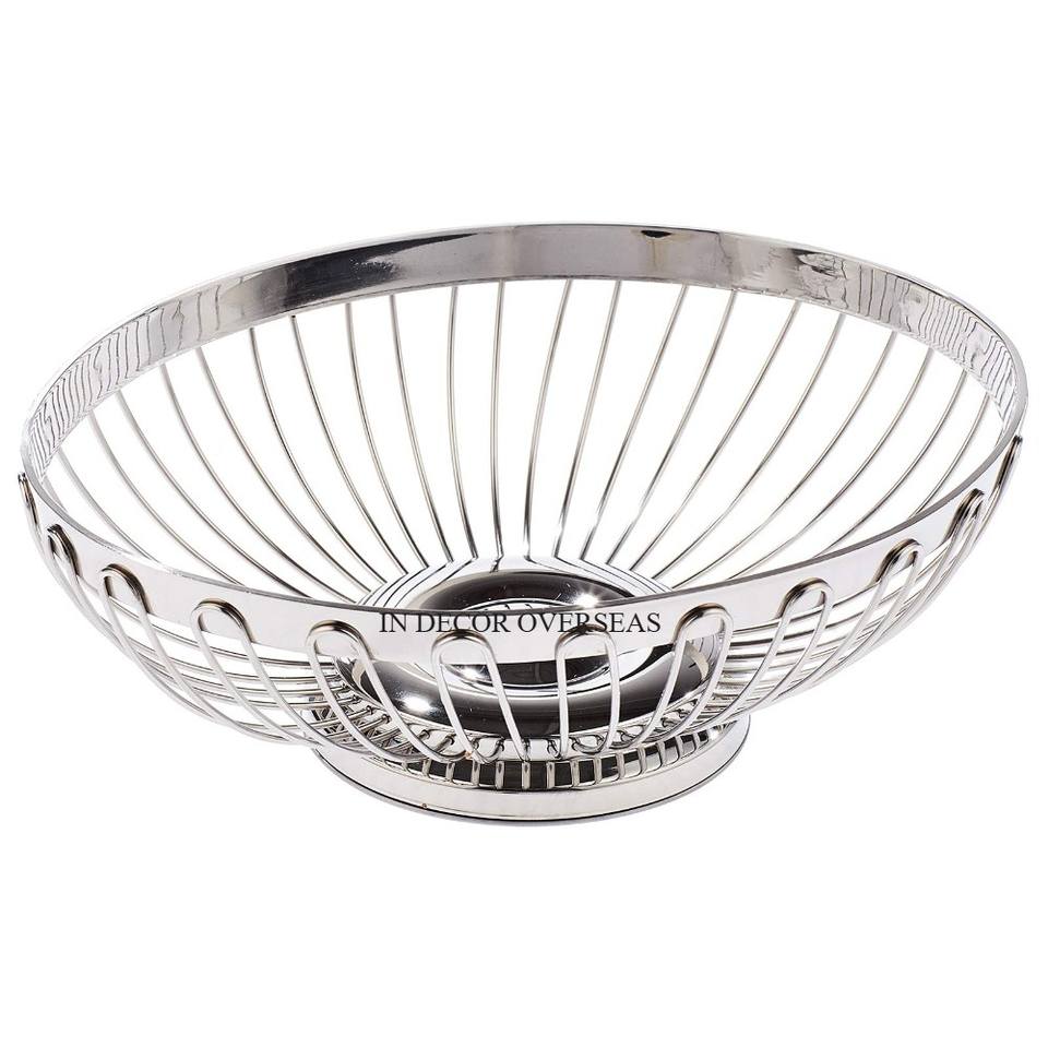 Luxurious Quality Metal Black Color Powder Coated Antique Fancy Designer Fruit And Bread Storage Basket With Wooden Base Supply