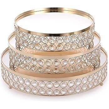 Support à gâteau luxueux en métal argenté et doré avec style contemporain en cristal