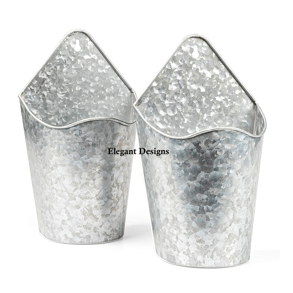 Luxueux jardinière murale galvanisée de qualité supérieure lot de deux poches vintage personnalisées à la main taille jardinière en gros