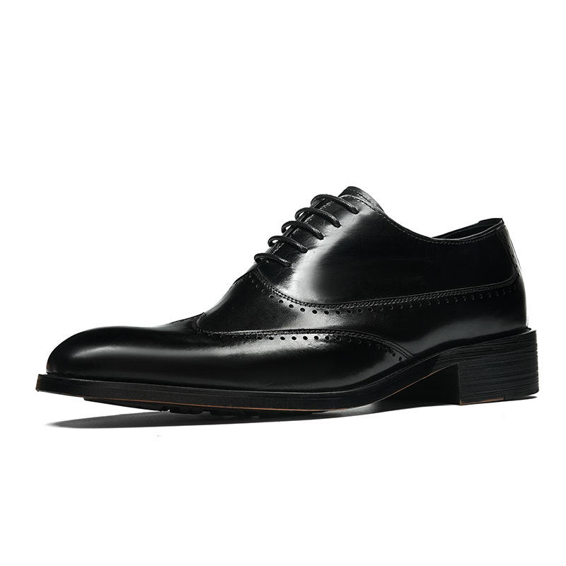Luxurious Cowhide Genuine Leather Men's Business Casual Formal Oxfords Shoes Black Evergreen Chunky Korean-Style Round-Toed