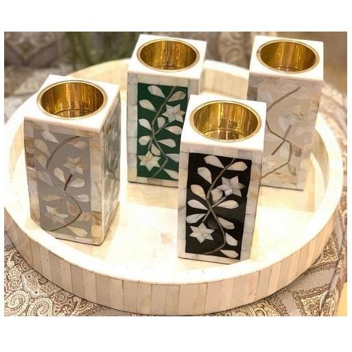 Bougeoir incrusté d'osMatériel
